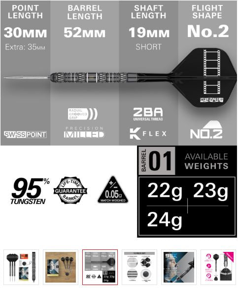 De dartset wordt geleverd met Swiss GRD Points in zowel 30 mm als 35 mm lengte, zodat spelers hun setup kunnen afstemmen op hun persoonlijke werptechniek. Het Swiss Point-systeem maakt snelle en veilige puntwissels mogelijk met behulp van de meegeleverde premium Swiss Point-tool, wat zorgt voor betrouwbare puntbevestiging en moeiteloze personalisatie zonder het spel te onderbreken.
